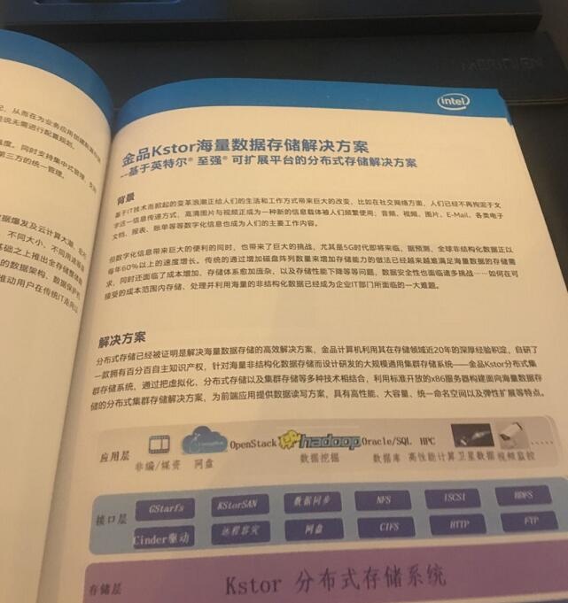 金品作為英特爾在中國的重要的合作伙伴之一,憑借多年的行業(yè)沉淀和專業(yè)化的技術(shù)服務(wù)能力,為行業(yè)客戶提供定制產(chǎn)品和服務(wù),最大程度滿足客戶的需求,贏得了客戶的信任與尊重,也獲得了市場的認(rèn)同。同時也為英特爾技術(shù)與解決方案的推廣和應(yīng)用做出了積極的貢獻(xiàn),本次峰會金品公司帶來了基于英特爾®至強(qiáng)®可擴(kuò)展平臺的分布式存儲解決方案——“金品Kstor海量數(shù)據(jù)存儲解決方案”