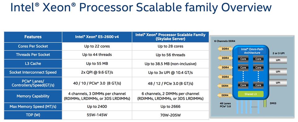 近年來,面對日益火爆的云計算、大數(shù)據(jù)分析、人工智能等行業(yè)應用,服務器市場也迎來了全面革新。隨著英特爾公司推出全新一代至強可擴展處理器,采用Skylake-SP架構(gòu),取代了之前的Xeon E/EP/EX的命名方式。相比上代,新的至強處理器支持Omni-Path高速互聯(lián)架構(gòu)(100Gbps)、萬兆因特網(wǎng)、第三代AVX-512指令集。