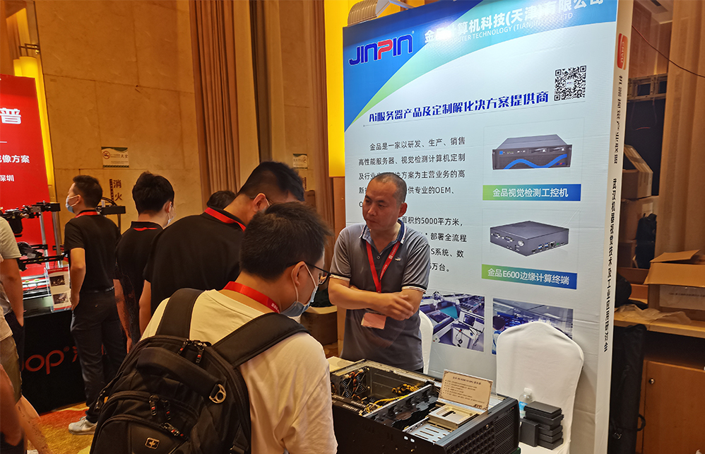 金品公司產(chǎn)品經(jīng)理董萬根在會議上做了演講,介紹了AI產(chǎn)品與機(jī)器視覺在PCB、晶圓檢測、新能源等領(lǐng)域的技術(shù)及應(yīng)用,并向參會代表分享了當(dāng)前企業(yè)自研的最新AI服務(wù)器產(chǎn)品。