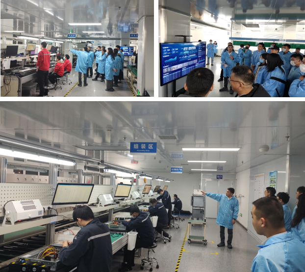 會(huì)前,由支持中心總監(jiān)-于建先生帶領(lǐng)大家對(duì)金品公司進(jìn)行參觀介紹,天津金品公司定位為金品體系的總部基地,集產(chǎn)品研發(fā)、生產(chǎn)制造與運(yùn)營(yíng)管理三大職能中心于一身,總面積約5000平方米,其中無(wú)塵車(chē)間1500平米,部署全流程生產(chǎn)線、自動(dòng)組裝機(jī)器人、視覺(jué)檢測(cè)機(jī)器人,搭載云MES系統(tǒng)與自主知識(shí)產(chǎn)權(quán)的自動(dòng)軟件灌裝平臺(tái)、檢驗(yàn)程序、老化程序等,形成完整的數(shù)字化管理平臺(tái),年產(chǎn)能超5萬(wàn)臺(tái)。